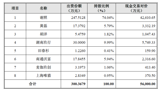 其中謝照、黃磊、胡洋、湖南玖行承擔(dān)本次交易的業(yè)績承諾,為業(yè)績承諾方;其他股東不承擔(dān)本次交易的業(yè)績承諾,為非業(yè)績承諾方。