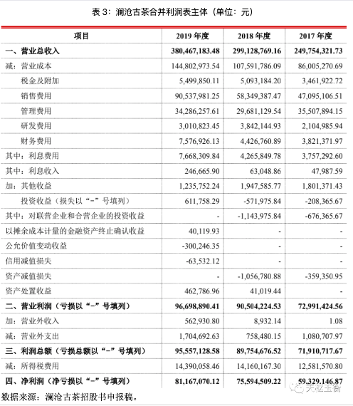 可是,瀾滄古茶招股書申報稿披露的銷量從2017年611.71噸下滑到2019年537.35噸,偏偏銷售收入如前所述從24,975.43萬元增加到38,046.72萬元?這說明同期瀾滄古茶的普洱茶每公斤單價從408.28元上漲到了708元,漲幅73%?。?!