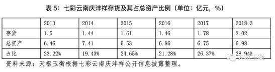 招股說明書申報稿披露,公司存貨余額分別為28,222.69萬元、38,271.53萬元、41,433.47萬元,占總資產(chǎn)的比例分別為61.97%、66.77%、56.27%,存貨余額及占比較高。相比之下,在普洱茶行業(yè)名氣更大的原新三板掛牌公司,同樣主營普洱茶的七彩云南慶灃祥公開披露,存貨占總資產(chǎn)的比重如下: