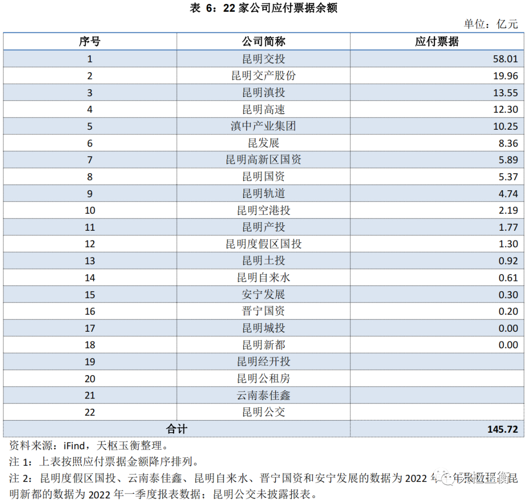 票據(jù)融資余額方面,昆明交投58億元排第一,第2-5名分別是昆明交產(chǎn)股份20億元,昆明滇投13億元,昆高速12億元,滇中產(chǎn)業(yè)集團(tuán)10億元;