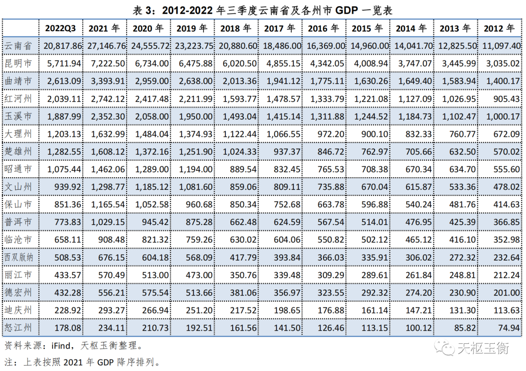 2022年前三季度,云南省GDP前四名仍然保持昆明市、曲靖市、紅河州和玉溪市不變,但楚雄州GDP超越大理州排名第五。