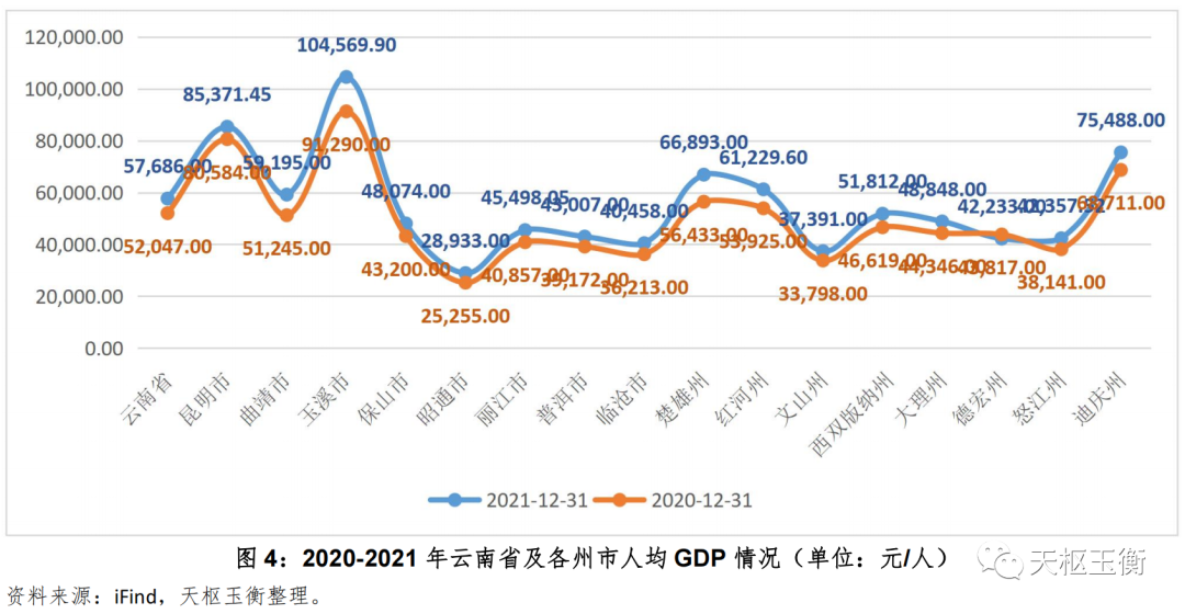 盡管昆明市的GDP總量遙遙領(lǐng)先,但2021年曲靖市和楚雄州的GDP增速分別為12.0%和11.2%,分別排省內(nèi)第一和第二名;而德宏州則是全省唯一一個GDP負增長的州市。