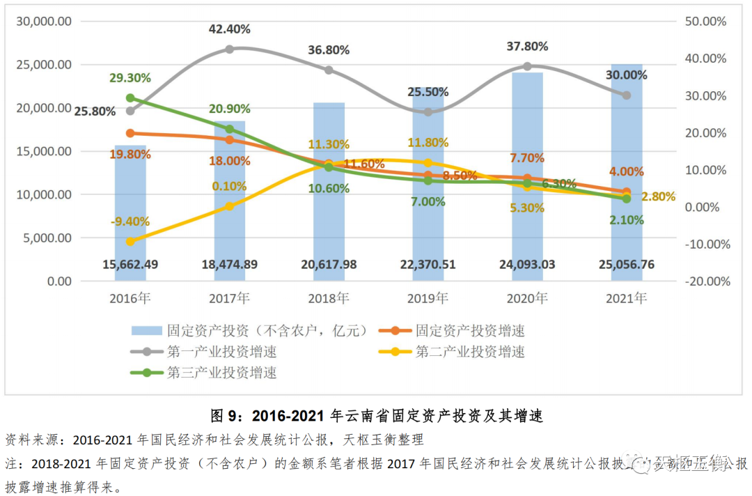 2021年全年,云南省固定資產(chǎn)投資(不含農(nóng)戶)比上年增長4.0%。分三次產(chǎn)業(yè)看,第一產(chǎn)業(yè)投資增長30.0%,第二產(chǎn)業(yè)投資增長2.8%,第三產(chǎn)業(yè)投資增長2.1%。