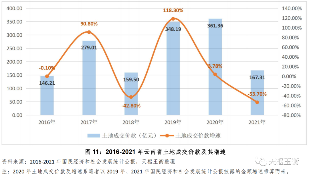 2021年云南省土地成交價款167.31億元,較2020年下跌了53.70%。