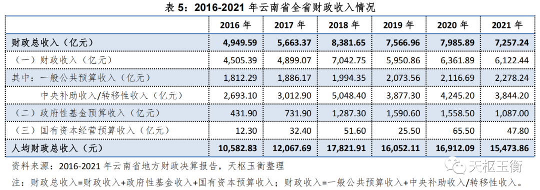 天樞觀察:云南省經(jīng)濟與財政發(fā)展水平及投融資公司負債情況