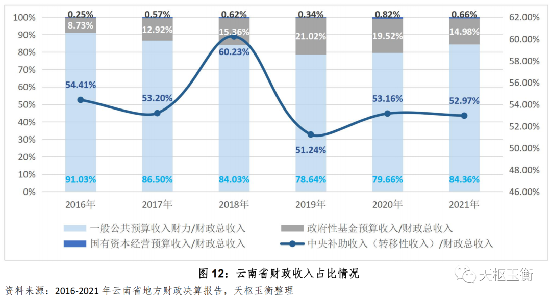 綜上所述,云南省近年來公共預算收入增速較緩,財稅質(zhì)量一般,依賴轉(zhuǎn)移性收入,政府性基金收入大幅下降,對債務(wù)保障較弱。