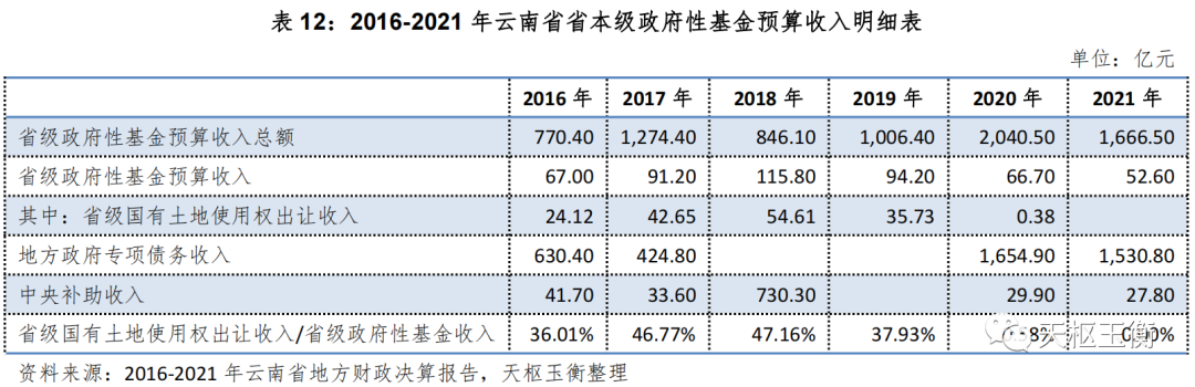 2021年云南省政府性基金收入較2020年下滑了30%,主要原因是2021年國有土地使用權(quán)出讓收入較2020年下滑了35%,土地出讓較為低迷。