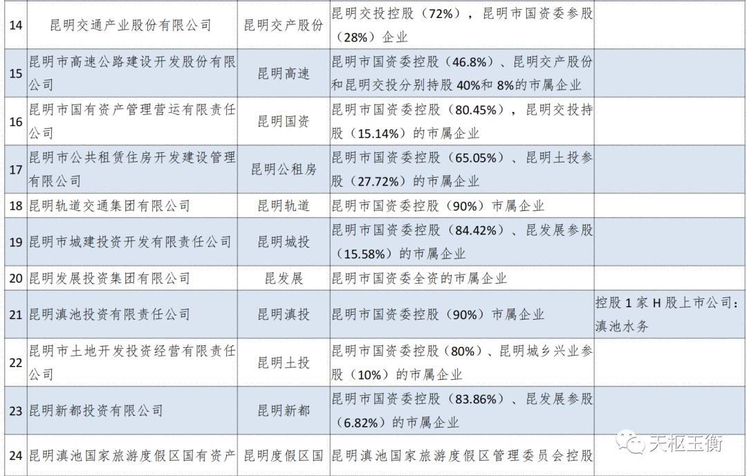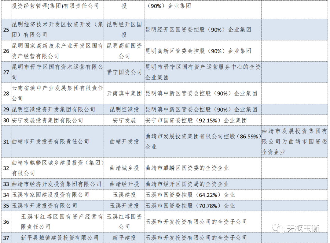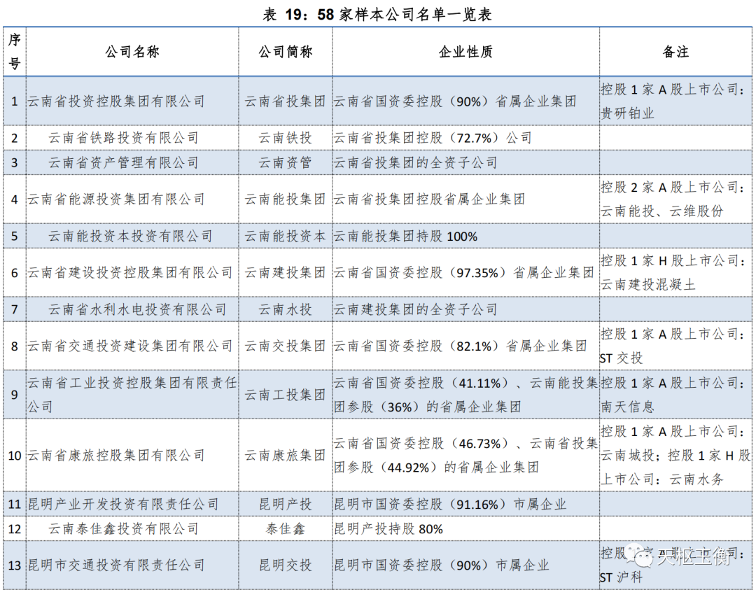 不包括由地方政府及其部門和機構(gòu)成立的經(jīng)營性公司,例如昆鋼控股、云天化集團、冶金集團、云錫控股、云銅集團都不在本文所列范圍內(nèi);