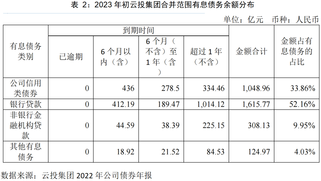 一、云投集團(tuán)2023年初有息債務(wù)合計(jì)3097.83億元