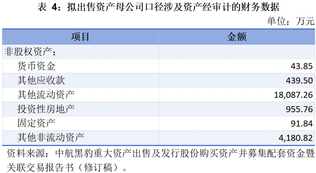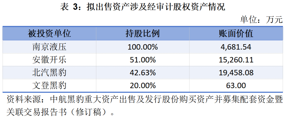 本次擬出售資產(chǎn)為截至2016831日除上航特66.61%股權(quán)外的全部資產(chǎn)和負(fù)債,具體包括本部非股權(quán)類資產(chǎn)及負(fù)債、北汽黑豹42.63%股權(quán)、南京液壓100%股權(quán)、安徽開(kāi)樂(lè)51%股權(quán)、文登黑豹20%股權(quán),其中本部非股權(quán)類資產(chǎn)及負(fù)債主要包括貨幣資金、預(yù)付款項(xiàng)及其他應(yīng)收款、投資性房地產(chǎn)、固定資產(chǎn)、其他非流動(dòng)資產(chǎn)、短期借款、其他應(yīng)付款等。
