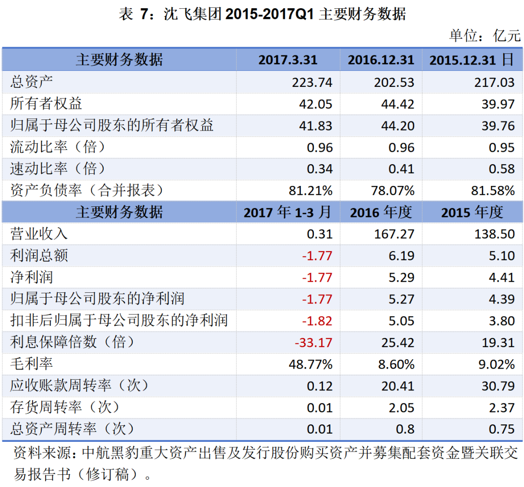 2015年至2017年一季度,沈飛集團(tuán)經(jīng)審計(jì)的主要財(cái)務(wù)數(shù)據(jù)及指標(biāo)如下表所示: