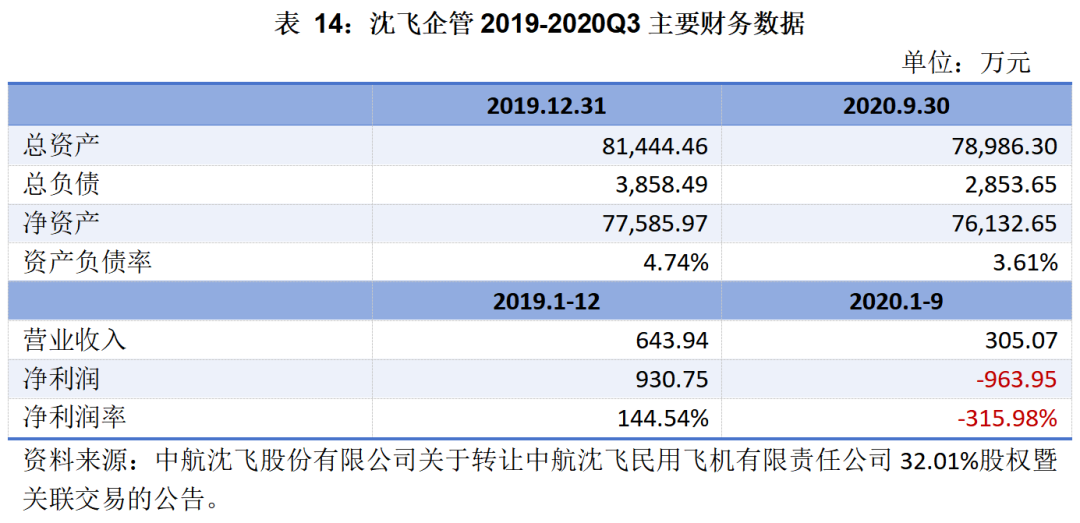 截止20209月末,沈飛企管總資產(chǎn)7.90億元,公司資產(chǎn)負(fù)債率僅3.61%;公司實(shí)現(xiàn)營(yíng)業(yè)收入305萬(wàn)元,凈利潤(rùn)則虧損964萬(wàn)元。