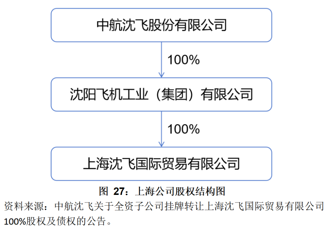 除上述三次與主業(yè)有關(guān)的股權(quán)轉(zhuǎn)讓之外,中航沈飛還涉及2次股權(quán)轉(zhuǎn)讓,分別是2019年掛牌轉(zhuǎn)讓上海沈飛國(guó)際貿(mào)易有限公司100%股權(quán)及債權(quán)和2021年轉(zhuǎn)讓中航(沈陽(yáng))投資管理有限公司45.9%股權(quán)。