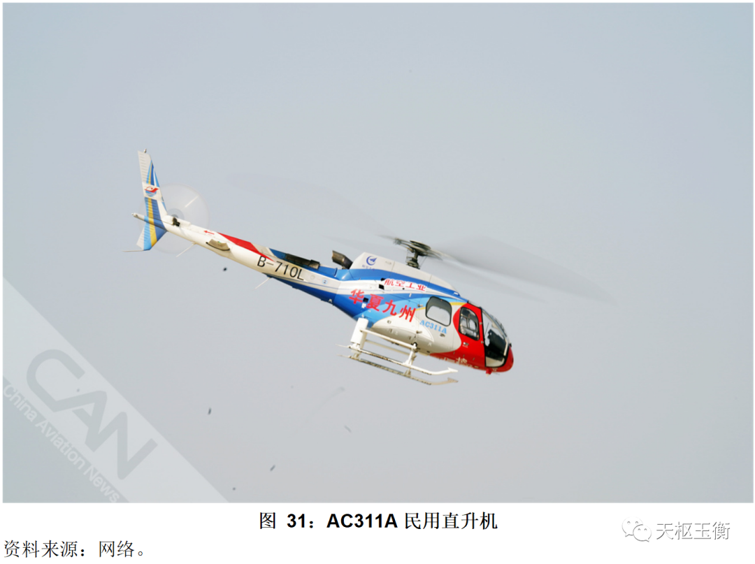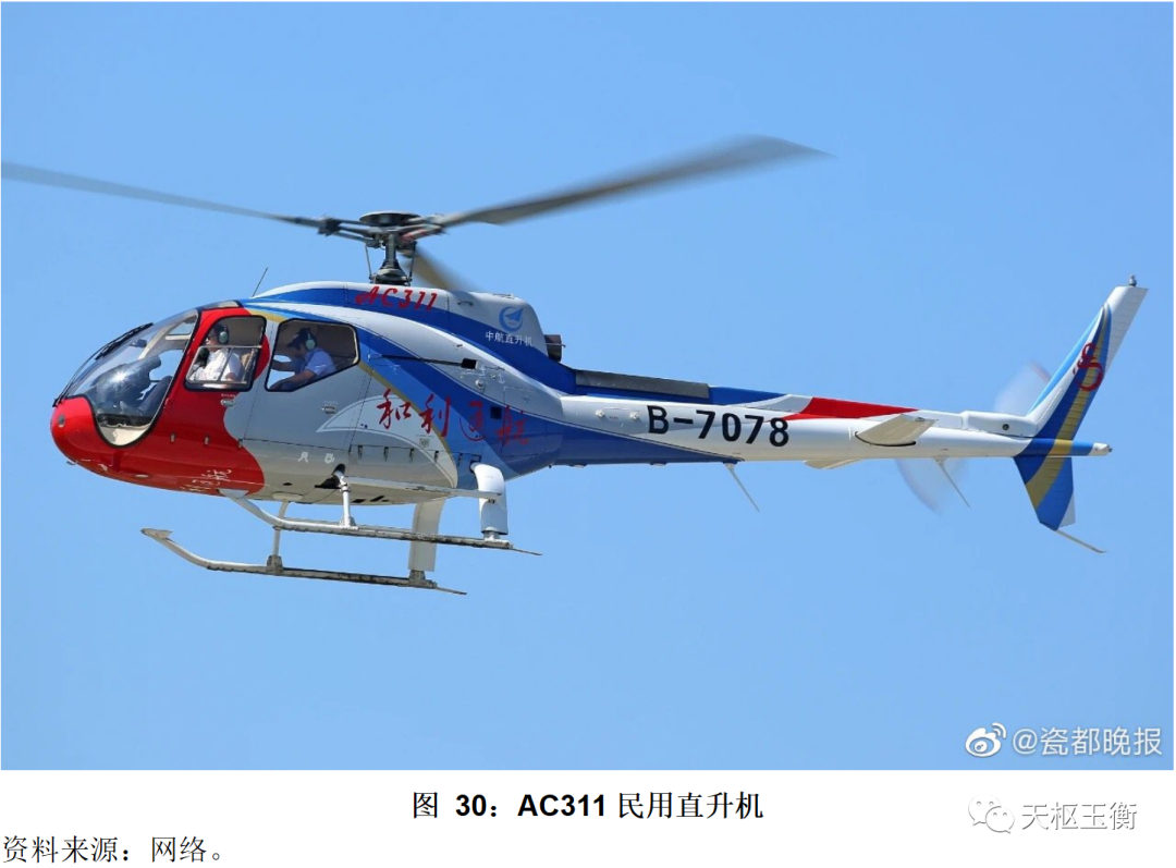 中直股份為國內(nèi)各型直升機(jī)(含直8、直9、直11等系列直升機(jī))提供零部件,同時(shí)公司也研發(fā)制造多型不同噸位、滿足各類用途的運(yùn)-12輕型多用途飛機(jī)、AC系列民用直升機(jī),是國內(nèi)直升機(jī)制造業(yè)的主力軍,在國內(nèi)處于技術(shù)領(lǐng)先地位。