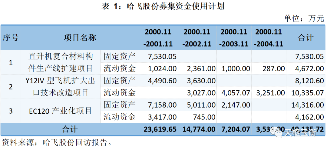 以上三個(gè)項(xiàng)目共需資金46,635.72萬元,扣除發(fā)行費(fèi)用后本次發(fā)行實(shí)際募集資金為45,600萬元,不足部分由哈飛股份自籌解決。