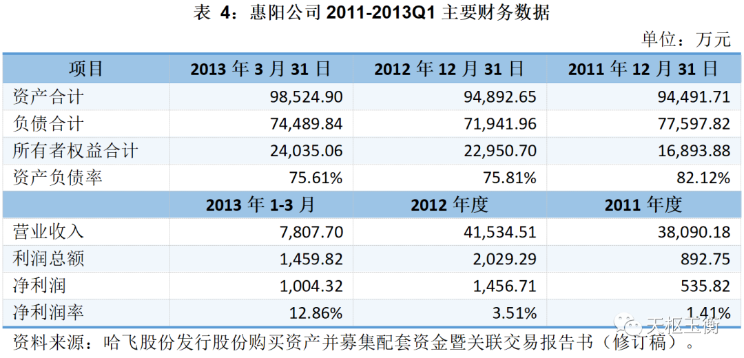 根據(jù)經(jīng)中瑞岳華審計(jì)的財(cái)務(wù)報(bào)告,惠陽公司2011-2013Q1主要財(cái)務(wù)數(shù)據(jù)如下: