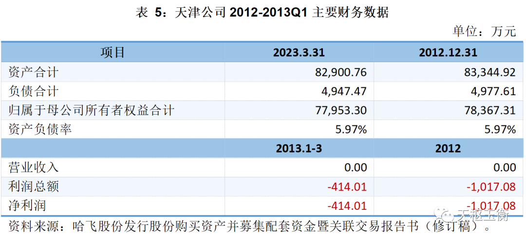 根據(jù)經(jīng)中瑞岳華審計(jì)的財(cái)務(wù)報(bào)告,2012-2013Q1天津公司的主要財(cái)務(wù)數(shù)據(jù)如下: