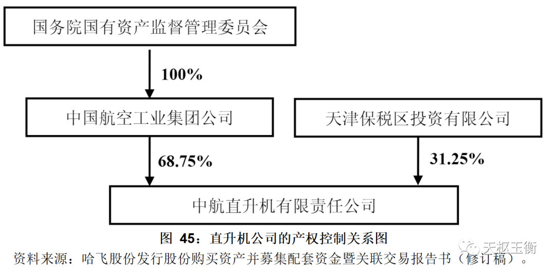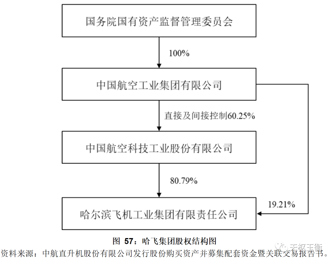 截至目前,中航科工持有哈飛集團(tuán)80.79%股權(quán),系哈飛集團(tuán)控股股東。航空工業(yè)集團(tuán)直接及間接控制中航科工60.25%股份,系哈飛集團(tuán)實(shí)際控制人。