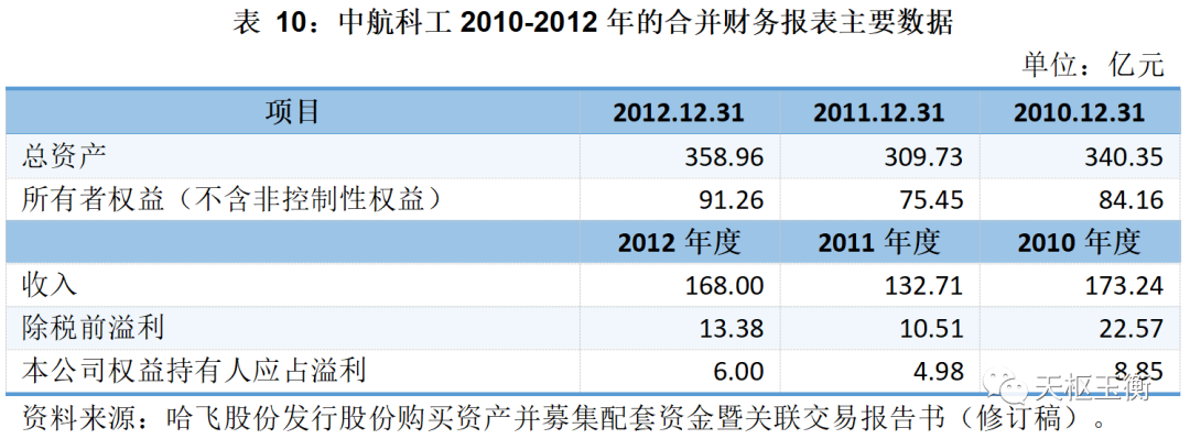 中航科工2010-2012年的合并財(cái)務(wù)報(bào)表主要數(shù)據(jù)如下: