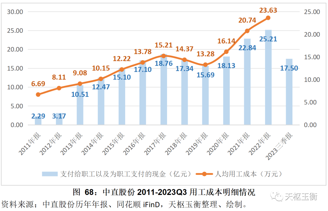 人工人數(shù)自2013年重組以來?;颈3址€(wěn)定并城逐年下降的趨勢;人均創(chuàng)收自2013年以來持續(xù)增長,但人均創(chuàng)利基本保持穩(wěn)定。