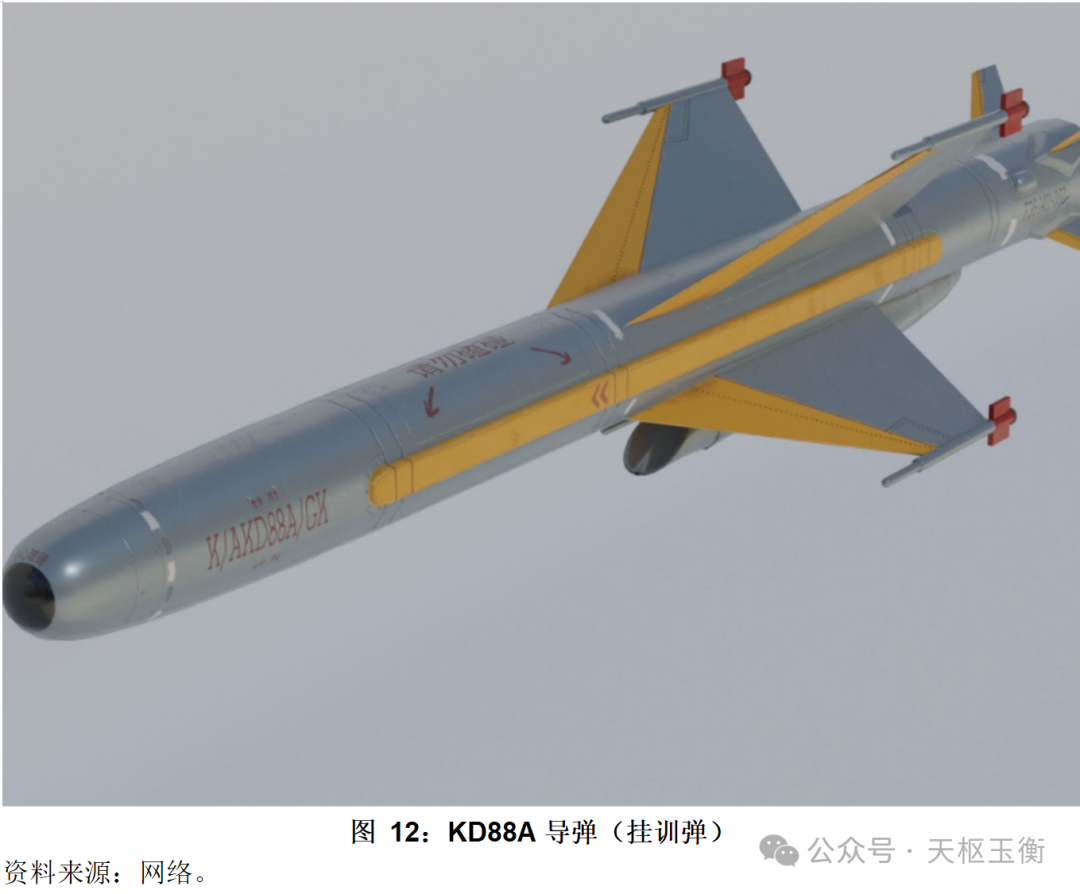 KD-88導(dǎo)彈是在C-802反艦導(dǎo)彈基礎(chǔ)上開發(fā)的,采用復(fù)合制導(dǎo)方式,最大射程與美國AGM-84“斯拉姆”空地導(dǎo)彈相當(dāng),這意味著解放軍戰(zhàn)機(jī)今后不必闖入熾烈的敵對空火力網(wǎng),就能對敵目標(biāo)加以“外科手術(shù)式打擊”。