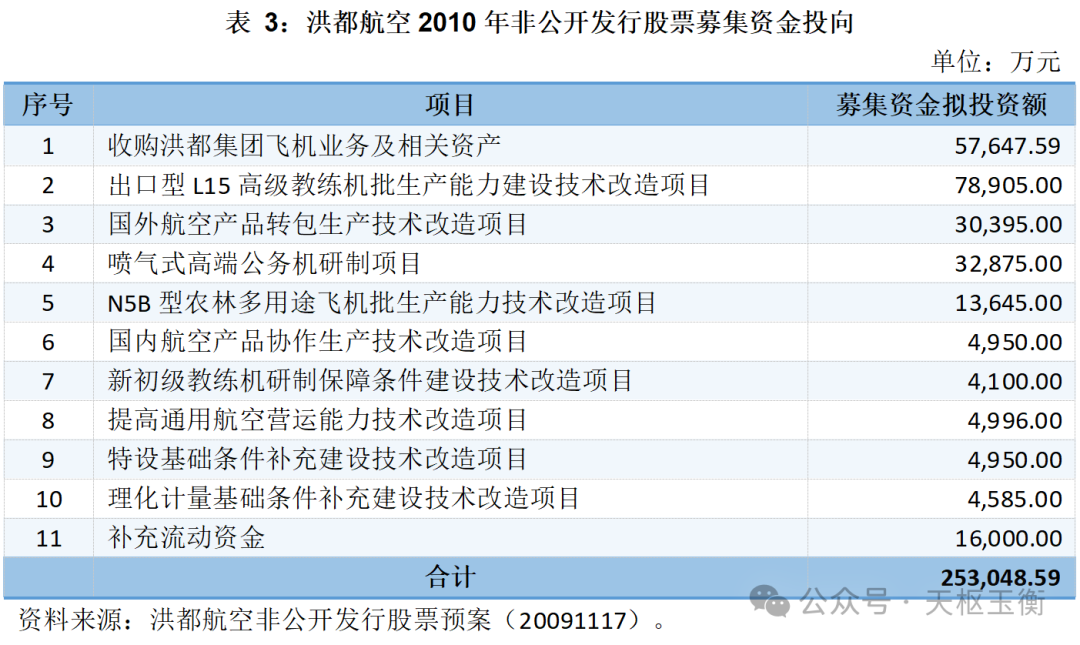 洪都航空2010年非公開發(fā)行股票,所募集資金扣除發(fā)行費(fèi)用后的募集資金凈額原則上不超過250,401萬元,所募集資金將用于以下項(xiàng)目的投資: